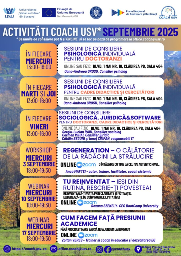 Centrul COACH USV din Universitatea „Ștefan cel Mare” din Suceava care deservește întreaga Regiune NE a României își reia activitățile și tu ești invitat(ă) să faci parte din poveste.