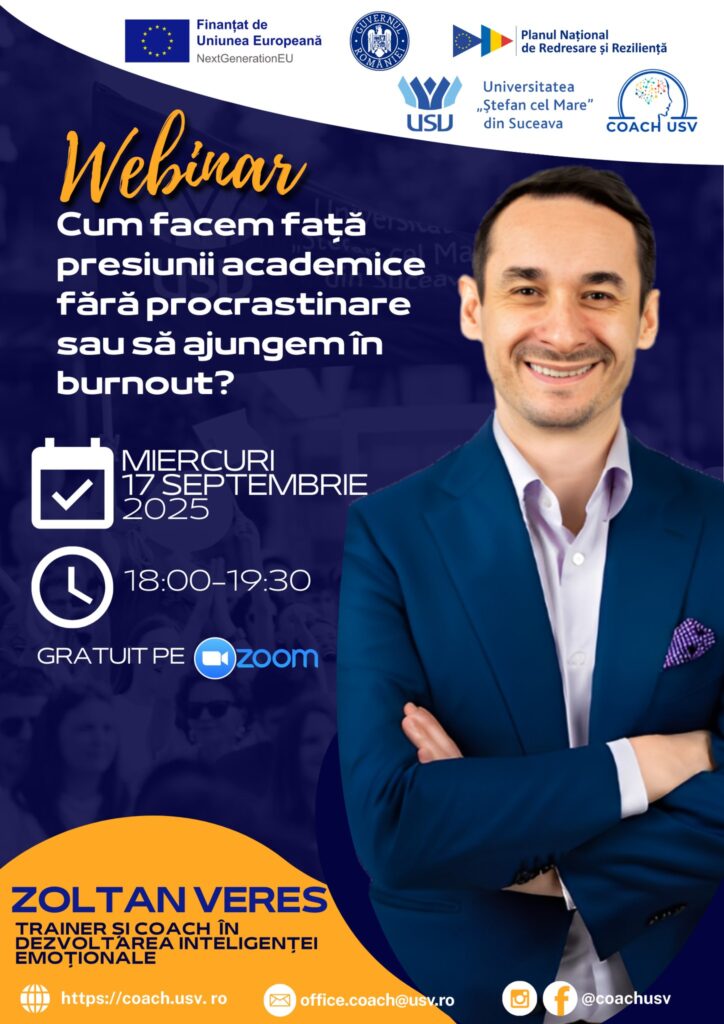 Centrul COACH USV vă invită la webinarul: Cum facem față presiunii academice fără procrastinare sau burnout?