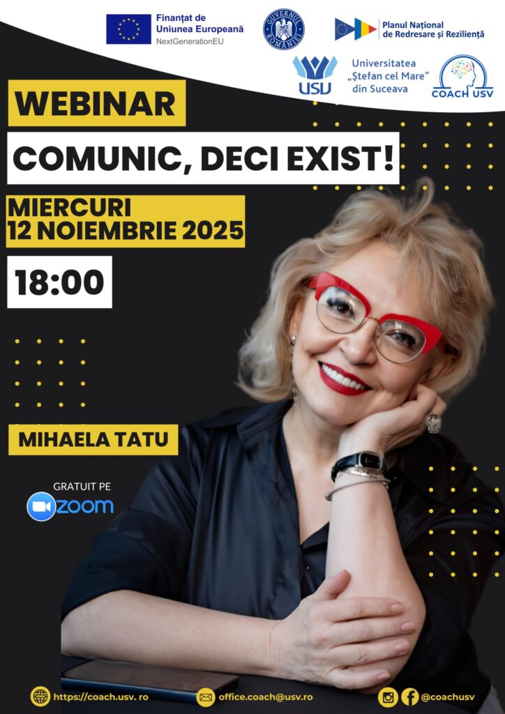 Cum te faci auzit? Cum transmiti cu sens? Cum comunici fără să te pierzi pe tine? Mihaela Tatu vine la Universitatea „Ștefan cel Mare” din Suceava pentru o întâlnire despre voce, prezență, autenticitate și puterea comunicării.
