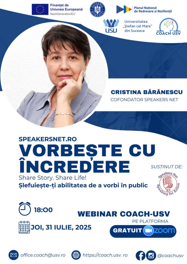 Cum te faci auzit? Cum transmiti cu sens? Cum comunici fără să te pierzi pe tine? Mihaela Tatu vine la Universitatea „Ștefan cel Mare” din Suceava pentru o întâlnire despre voce, prezență, autenticitate și puterea comunicării.